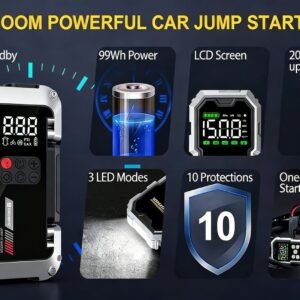 Potencia de 9000A, arranca coches, camionetas y motos sin problemas, incluso con bater¨ªas completamente agotadas.