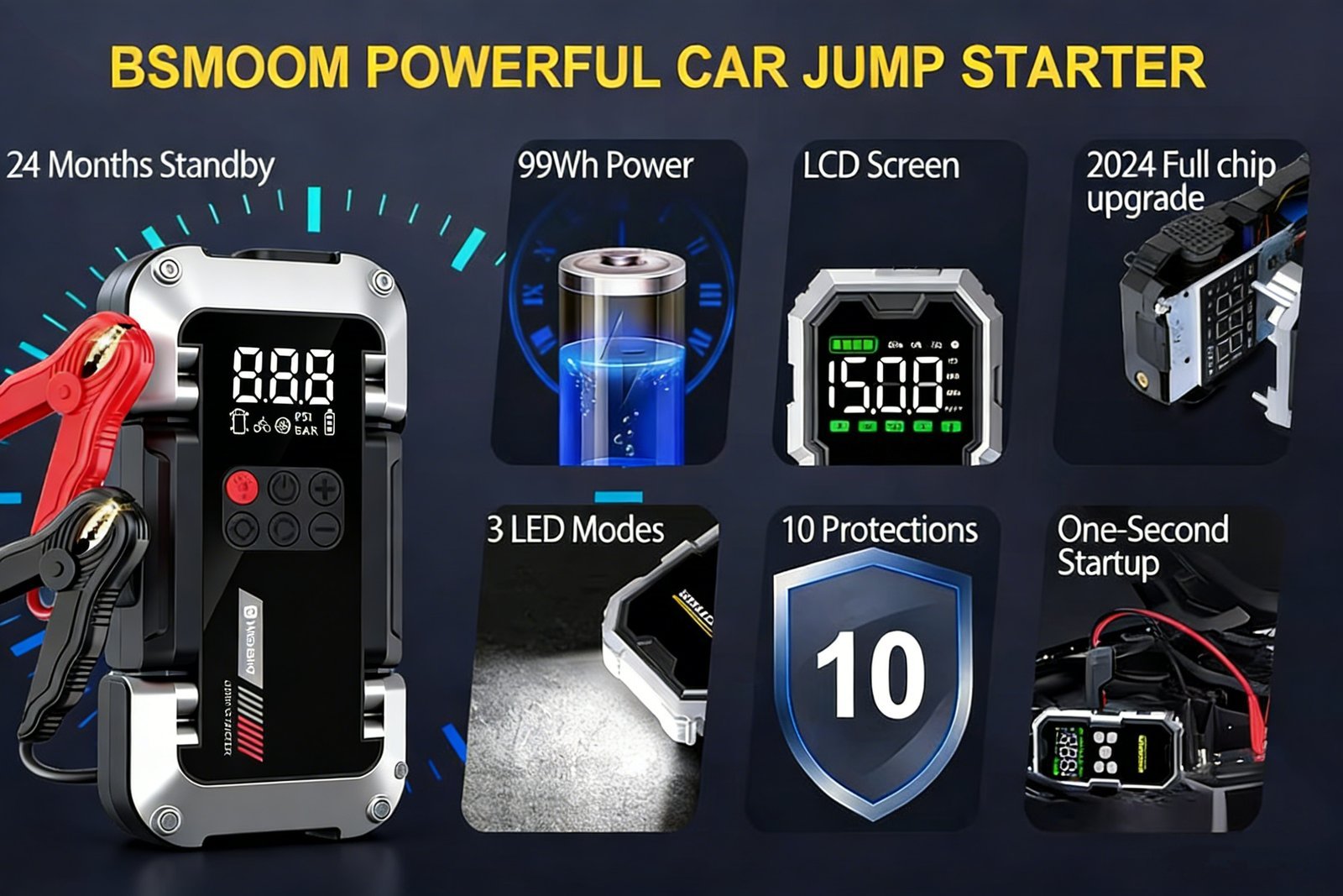 El arrancador de bater¨ªa port¨¢til Wishsky 9000A con compresor de aire es genial, dos funciones en uno y una salvaci¨®n en situaciones de emergencia.